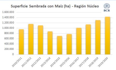 2019 es otro año más de crecimiento para el cultivo, que desde hace 6 años no para de ganar área en la región núcleo. A un mes de la siembra, quedan ya pocas decisiones por tomar, el 10% de suba en área maicera, respecto al año pasado, es muy firme. ¿Cómo son los márgenes respecto a los del ciclo anterior? En general, un poco más apretados por los costos de fertilizantes, pero en la región afirman que son los más prometedores. El cultivo tiene los mejores resultados, incluso por encima del trigo / soja de segunda. Y tambien le gana a la soja de primera, que pasó a quedar atrás en las planillas de márgenes. Pero hay mucha inquietud, porque tampoco deja de hablarse encendidamente de financiamiento, tasas, escenarios futuros y del creciente riesgo que conlleva encarar cultivos de mayores inversiones. A pesar de todo esto, en 30 días más, las sembradoras volverán a surcar la región con la intención de materializar este nuevo desafío: implantar 1,43 M de ha, más del doble de lo que se hacía 6 años atrás.