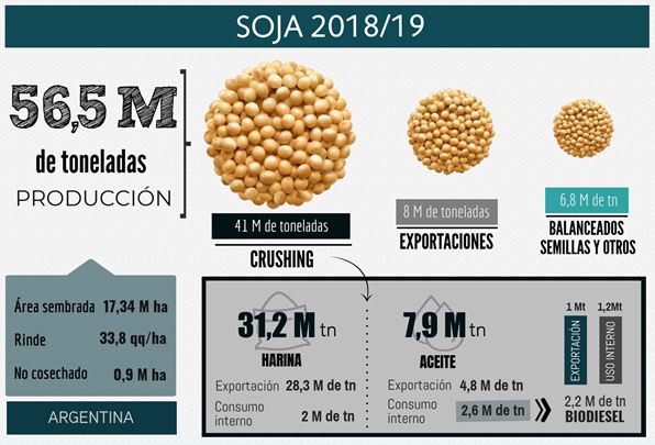 Producción, exportaciones y consumo de soja en la campaña 18/19