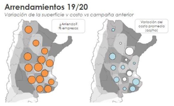 Casi la mitad de los empresarios encuestados arrendará campos agrícolas en 2019/20. Se prevé en promedio un aumento en el negocio de los alquileres, tanto en superficie como en costo. Así, respecto de 2018/19, se espera un aumento promedio de 2,1% en superficie y un incremento promedio de 2,7% en el precio de arrendamiento (medidos en qq/ha de soja). Los mayores incrementos previstos se registrarían en las regiones CREA Sudeste, Córdoba Norte y Mar y Sierras, mientras que en el Norte de Santa Fe, Norte de Buenos Aires y Oeste los valores caerían respecto de 2018/19.