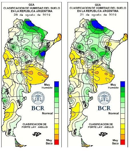 Las lluvias del trimestre frío se despiden mal del oeste, en los últimos 29 días de agosto no hubo registro de lluvias en Córdoba. Por eso no llama la atención que en toda la región centro, dónde más se acentúa la falta de agua es allí. En este momento, en el sur de la provincia deberían llover 80 a 100 mm para recomponer por completo la falta de agua. Pero hace un año, hacían falta 120 a 140 mm que ponían en dudas las posibilidades de hacer el maíz temprano sin reservas. La distribución era muy diferente entonces, la mayor necesidad estaba en el centro y norte provincial. Pero en la comparación, el trimestre frío del año pasado fue incluso más miserable en lluvias, sólo el 37% de la provincia alcanzó lluvias de 15 mm o más. En este 2019, el 64% de la provincia alcanzó a igualar o superar ese monto.
