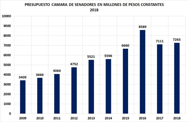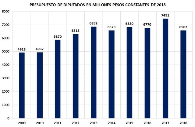 En el caso de Argentina, del presupuesto de diputados y senadores de 2018, el 92% del presupuesto de ambas cámaras está destinado al gasto en personal, así que no me pueden venir con obras de refacción ampliación o cualquier otra historia que genera engaño en el dato.