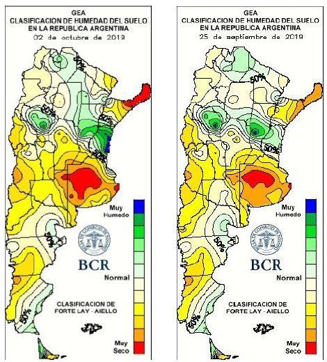 Los trigos están desplegando su hoja bandera, las lluvias no alcanzaron para recuperarlos. Ya se estiman pérdidas de rinde de 10 a 40%. La falta de agua en el centro-sur santafesino le puso un techo al potencial. Aunque llueva ya se estima entre un 10 a un 15% menos de rinde. Hacia el sur de Santa Fe, y oeste bonaerense y el este cordobés, las pérdidas trepan del 20 al 40%. Y pueden agravarse si no llueve. El 25% de los cuadros está en condiciones regulares, 30% bueno, y 45% muy buenos. Los pronósticos no son alentadores. Pero si no llueve pronto, hasta los lotes muy buenos sufrirán un gran impacto, ya que no podrán expresar en rinde la gran cantidad de macollos que formaron con el clima frio. Los que están espigando, un 5%, son los que tendrían las mayores pérdidas. El 35% está con la espiga embuchada y resto entre hoja bandera y encañazón.