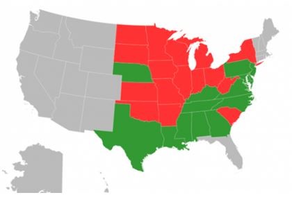El gráfico que sigue muestra la información del USDA – NASS al 28 de octubre pasado. Los estados en rojo están por debajo del promedio de avance. Claramente, son los principales en producción de maíz.