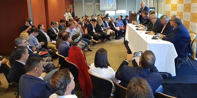 El tradicional evento que marca el inicio de la comercialización de la cosecha de trigo 2019/20, estuvo encabezado por el Pte. de la Bolsa de Cereales de Córdoba, Juan Carlos Martínez; el Pte. de la Bolsa de Cereales de Buenos Aires, José Martins; el Ministro de Agricultura y Ganadería de Córdoba Sergio Busso; el Pte. de la Federación Argentina de la Industria Molinera, Diego Cifarelli y el Subsecretario de Mercados Agropecuarios Jesús Silveyra.