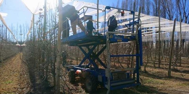 Rodriguez propuso la necesidad que los más chicos se asocien para lograr escala y de esta forma acceder a la maquinaria moderna con los últimos adelantos tecnológicos. Suena muy lógico. Pensemos en una finca frutícola. Las plataformas facilitan enormemente la poda y la cosecha, aumentando la productividad, reduciendo la fatiga y los accidentes laborales. Al contar con tijeras neumáticas permite también la incorporación de la mujer al trabajo. Pero difícilmente esta inversión pueda ser solventada por un pequeño productor. Si una plataforma tiene una capacidad de trabajo de 30 hectáreas por año, bien podrían agruparse 10 productores vecinos de 3 hectáreas cada uno y trabajar en forma conjunta. El asociativismo no es exclusivo de la producción. Puede ser también para comercializar mejor sus productos, para comprar insumos con mayor volumen, para capacitarse, para integrarse vertical y horizontalmente, etc. Pero para garantizar el éxito, debe haber un acompañamiento a estos productores a través de programas.