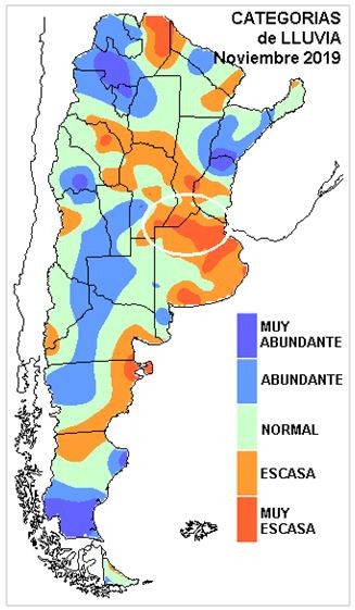 Si bien el mes de noviembre aún no cierra, las lluvias que puedan concretarse en estas últimas jornadas no aportarán modificaciones en términos estadísticos. Es decir, las anomalías ya están definidas y como puede notarse en el mapa, la zona núcleo no ha logrado completar los valores normales de lluvia del