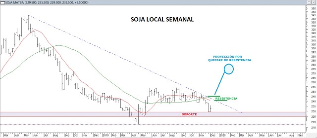 En tanto, por el lado del mercado local, si bien somos conscientes que es un mercado condicionado a lo que pueda pasar con las retenciones, creemos que en lo inmediato, mientras los precios no accedan por debajo de la zona de soporte en 230-225 dólares, será posible desde aquí el avance del commodity quede retomado, en camino de acceder en el corto plazo hacia instancias de 240-245 dólares.