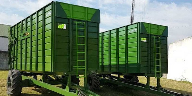 Opera con una capacidad volumétrica de 30.000 litros y sistema de descarga trasera con vuelco desde gran altura, lo que permite transportar todo tipo de forrajes y pasturas picadas.