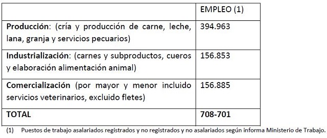 El total de las cadenas pecuarias de la Argentina emplean a más de 700.000 personas, en forma directa considerando la información elaborada por FADA y sobre la base de la información disponible en el Ministerio de Trabajo y el INDEC: