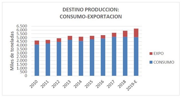 a más de 8,5millones de toneladas, enviando al mercado interno 5,8 millones