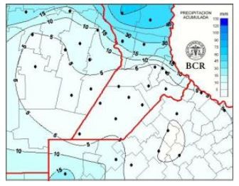 Las precipitaciones de los últimos 7 días se dieron sobre el noreste de la región. Los mayores milimetrajes fueron para el centro de Santa Fe. Carlos Pellegrini registró 69 mm e Irigoyen, 61 mm. Pero el este de Córdoba, sur de Santa Fe y noroeste de Buenos Aires siguen casi sin recibir agua.