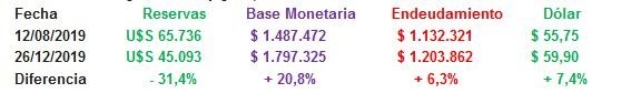 Se fueron del Banco Central reservas por cerca de u$s 20.000 millones, la base monetaria creció en $300.000 millones aproximadamente y hubo una leve suba del endeudamiento, que mutó de Leliq a Leliq más pases de corto plazo pero muestra inalterado el stock de deuda.