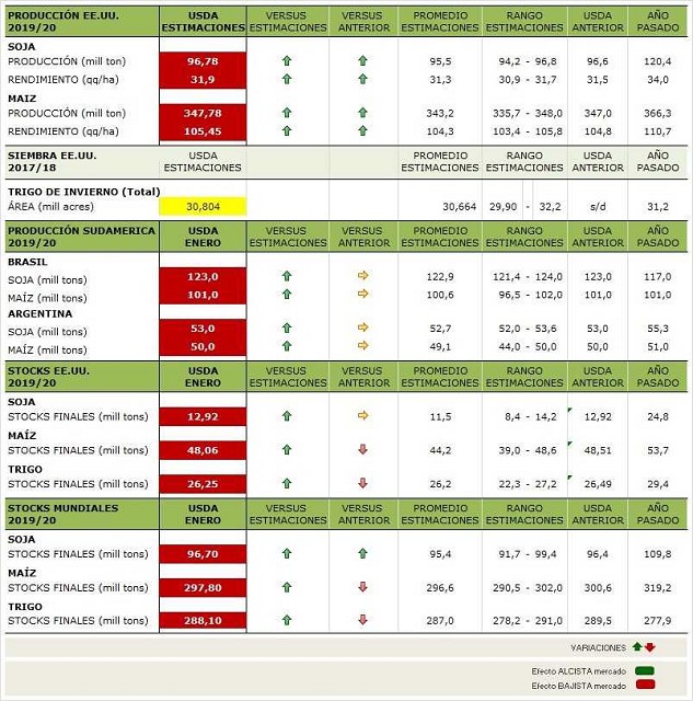 *En VERDE: Soja Enero / NARANJA: Maíz Abril / AMARILLO: Trigo Enero