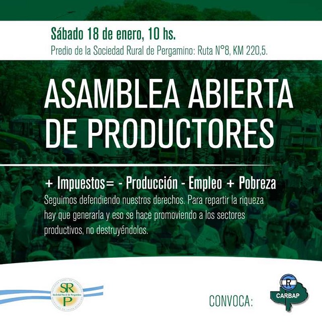 Este encuentro de productores organizado por la Confederacion de Asociaciones Rurales de Buenos Aires y La Pampa es el segundo de una serie de asambleas que se desarrollarán en Buenos Aires y La Pampa, y que comenzo el pasado 7de enero en Salliquelo.