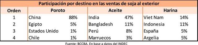 China, quien absorbió el 88% de las exportaciones de 2019. En el mercado de aceite de soja, India y