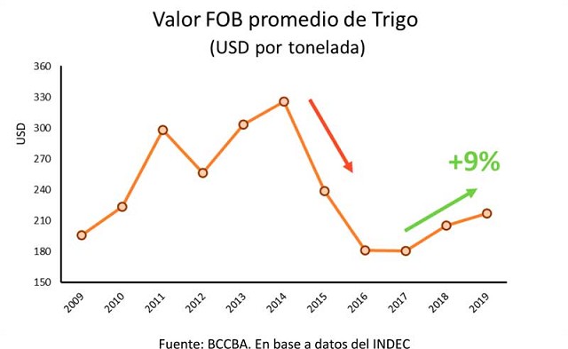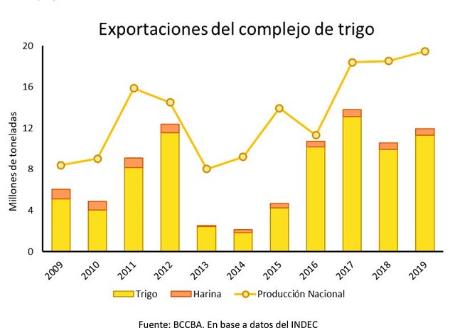 Las exportaciones de trigo subieron un 14%, pasando de 10 millones de toneladas en 2018 a 11,3 millones