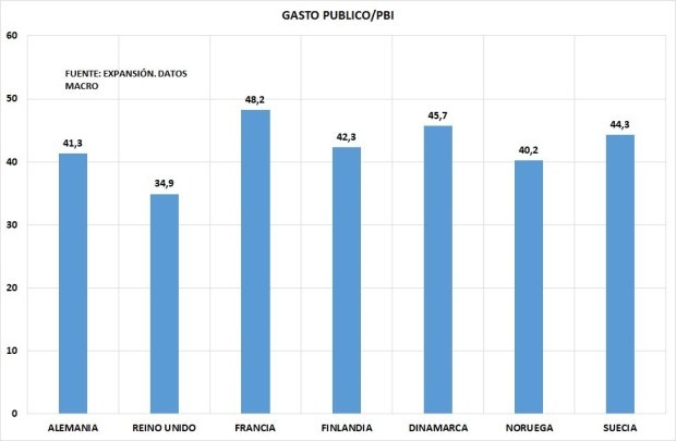 Es más, de los países seleccionados, Francia es el que tiene la mayor relación gasto público/PBI. No se observa una diferencia abismal en cuanto a gasto público, si bien en todos los casos son altos.
