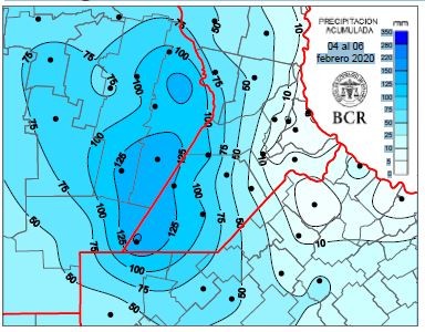 Pero llegó el alivió a casi toda la región: el 60% recibió lluvias que superaron los 50 mm. En buena parte de los departamentos de Unión y Marcos Juárez los registros superaron los 100 mm. Hay lugares, cómo en Guatimozín dónde llovieron 148 mm, que hubo anegamientos de área bajas y seguramente se perderá superficie productiva. Pero se necesitaban lluvias y ahora las sojas van rumbo a los 45 qq/ha. El agua llegó en forma sumamente oportuna, justo en pleno llenado de granos, cuando empezaba a agravarse el desmejoramiento de la condición de los cultivos. Sin duda esta ha sido una semana fundamental que va a marcar una gran diferencia cuando se revelen los rindes finales en las cosechadoras.