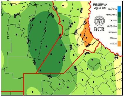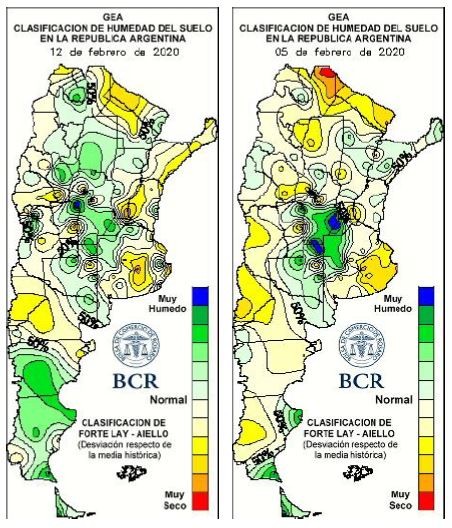 La franja más afectada es el área costera que se extiende entre 30 y 50 kilómetros hacia el centro de la región núcleo. Pero el sector más afectado arranca en el sur de Santa Fe y rodea a Rosario. Los técnicos coinciden en que si el auxilio no llega, el rinde de la soja del este podría caer 10 quintales en la de primera y 20 la de segunda. La falta de lluvias importantes allí se extiende desde el 16 de enero, casi desde hace un mes. La condición regular se extiende afectando al 5% del área. En el resto la situación mejoró y el 65% de la región está en condiciones excelentes a muy buenas. La soja atraviesa etapas críticas, el llenado de granos (R5 a R6) en las de primera demanda más agua en forma perentoria. El estrés se nota cada vez más. La de segunda está en floración a fructificación (R2 a R4) y es la más resentida y la que más expresa las diferentes calidades de suelo. La mala noticia es la presencia sobre el continente del sistema de alta presión del Atlántico que inhibe el desarrollo de sistemas precipitantes.