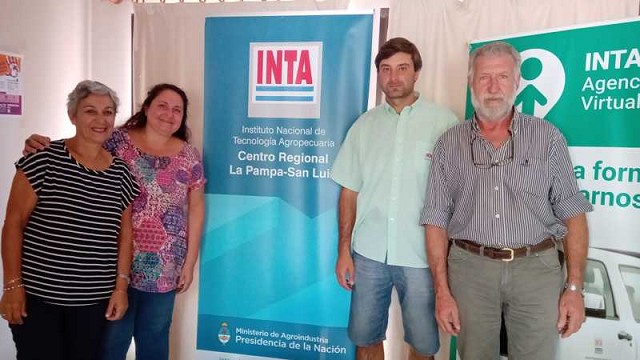 En la reunión estuvieron presentes, además de la Delegada Traverso, el Director de la EEA INTA Anguil, Edgardo Adema, y los ingenieros agrónomos María Eugenia Rossi y Lucas Butti.