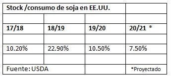 Respecto a la soja, la relación stock/consumo en EE.UU. ha vuelto a los magros niveles del año 2017. Es decir, se ha regresado al momento anterior al conflicto comercial entre este país y China.