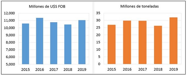 - Estas exportaciones, en términos monetarios, el último año apenas se superaron los 11 mil millones de dólares FOB, todavía por debajo de lo observado en 2016, aunque mayor que los últimos dos años.