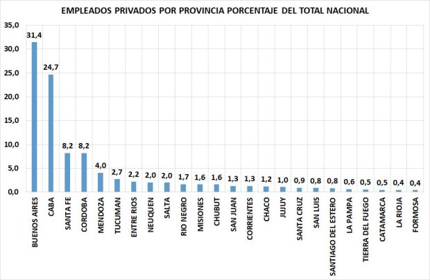 Respecto a los 6 millones de empleados en blanco en relación de dependencia en el sector privado, el grueso está concentrado en Buenos Aires, CABA, Santa Fe y Córdoba.