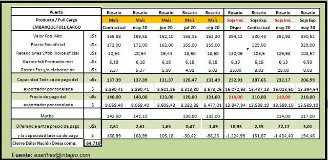 » Bajo este análisis, esta mejor pago el maíz con contractual (+2,61 u$s/tns sobre la CTP) vs. la soja contractual (-18.93 u$s u$s por debajo de la CTP).