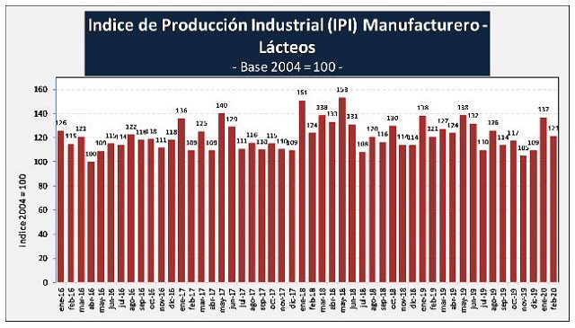 Índice de Producción Industrial Manufacturero – LÁCTEOS - febrero de 2020