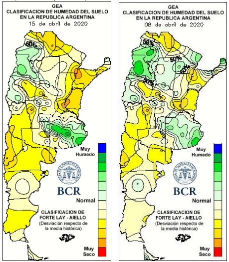 En el relevamiento de esta semana la intención de siembra para la zona núcleo expresa una baja de un 30% hasta una suba de un 10% respecto del área del año pasado. La mayor coincidencia se da en torno al rango de una leve baja o 10% de disminución cuando aún falta todavía buena parte de la cosecha gruesa por recoger. En el centro sur de Santa Fe hay más entusiasmo por el cereal en esta semana. Sin embargo, en el resto de la región hay dudas, sobre todo donde los rindes de segunda han resultado más afectados por la falta de agua. Son varios los factores que se señalan a la hora de la definición: las complicaciones para la provisión de insumos necesarios por el aislamiento, la recarga de agua en el perfil hasta la siembra, la necesidad de financiamiento a fin de año y la posibilidad en el control de malezas. Un ingeniero de Bigand explica que "hay necesidad de hacer trigo para financiarse. De mantenerse la situación actual, con relación a los derechos de exportación y el precio del trigo, se mantendría la superficie (del año pasado)".