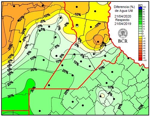 Uno de las variables claves de la siembra de trigo 2020/21 son las lluvias. En un año dónde es tan importante tener éxito productivo hay buenas noticias. La primera es que la siembra triguera arrancará con mejores condiciones que hace un año, ya que las reservas de humedad muestran una diferencia a favor en el 70% del área. La segunda buena noticia tiene que ver con el regreso de las lluvias. Tras el buen tiempo que viene acompañando el veloz desenvolvimiento de la cosecha, hay pronósticos de tormentas que dejarían acumulados muy importantes en la región en los próximos días. En la semana agrónomos de Rosario y Bigand señalaban que con las reservas que hay actualmente en los suelos, hasta los dos metros, obtendríamos trigos de 20 a 25 qq/ha. ¿Cuánta agua hace falta entonces? Los modelos coinciden con los ingenieros, que señalaban la falta de 100 mm en las zonas más deficitarias, como se muestra en la imagen.