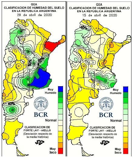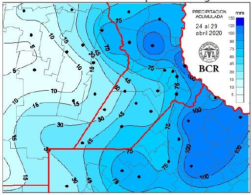 El centro sur de Santa Fe que hasta la semana pasada se encontraba con déficit hídrico, hoy presenta condiciones óptimas de humedad. Los acumulados de 75 a 100 mm que recibieron fueron claves para dejar atrás la incertidumbre por la falta de agua y posibilitan sumar nuevos lotes a la intención triguera. Los totales semanales oscilaron entre 40 y 80 mm en promedio. Pero hubo sectores que superaron los 100 mm. El valor máximo se registró en Chacabuco, con un total semanal de 112 mm. Se destacan también Pergamino, con un total de 107,6 mm y Classon, donde el acumulado fue de 96 mm. El norte bonaerense cuenta con los perfiles del suelo incluso por encima de su capacidad de campo. El menos favorecido por las últimas lluvias fue el este de Córdoba con acumulados de 5 a 75 mm aunque esa zona ya venía con mayores acumulados de lluvias.