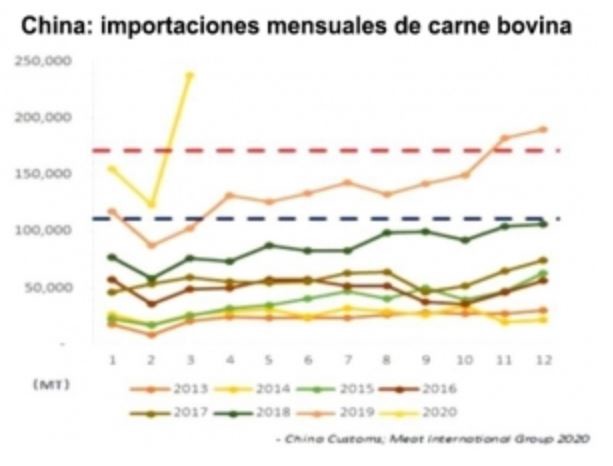 "Si bien este pico pudo haberse registrado por mercadería atascada en puertos vecinos, en enero y febrero, también muestra que la logística y distribución en China empezó a funcionar a pleno, uno de los grandes temores que teníamos desde los países exportadores", resaltó, aludiendo al escenario que comienza a visualizarse de aquí en más. "Es una gran noticia. China está de nuevo en carrera y con capacidad de mover enormes volúmenes de carne", enfatizó.