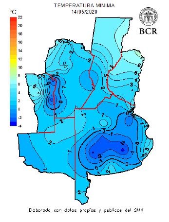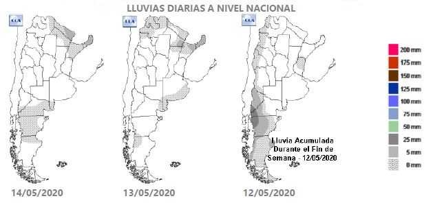 Las bajas temperaturas no cesan de registrarse a cada semana, alejando la amenaza de un próximo invierno cálido. El frío, aparte del agua es otro factor vital en el desarrollo y éxito del cultivo. La reciente madrugada del 14 de mayo fue el día más frío en lo que va de mayo: amaneció con temperaturas bajo cero grado en gran parte de la Región Pampeana. El centro sur de Buenos Aires fue la zona donde se registraron los valores más bajos: Tandil marcó -3.3 °C, Coronel Suárez -3.1 °C, Azul registró -2.3 °C y Bolívar -2 °C. En la región núcleo, los termómetros del sudeste cordobés quedaron sumergidos con temperaturas por debajo de cero. Canals midió -0.6 °C y Monte Buey -0.5 °C.
