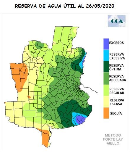 Las reservas de humedad plantean una diferenciación entre el este y el oeste que ya parece difícil de revertirse. Al menos no hay previsiones de lluvia que puedan generar recargas significativas sobre el oeste. Las zonas más mediterráneas de CB tienen un riesgo aumentado de sufrir escasez de humedad incluso sequía durante el invierno. Las áreas del oeste del NEA y el NOA pueden correr la misma suerte. Hubo una buena recuperación en la Mesopotamia, aunque en mejor medida sobre el este.