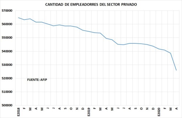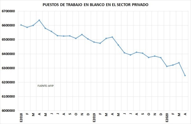Desde el inicio de la crisis de abril 2018, se perdió un promedio de 13.984 puestos de trabajo en el sector privado por mes, y Fernández está perdiendo un promedio mensual de 14.908 puestos mensuales de puestos de trabajo.