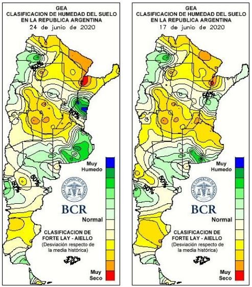 En Bigand se estima que un 20% del área quedará sin cereal. En el sudeste cordobés disminuyen las expectativas de completar el 10% que resta con cada semana que pasa sin llover. Las lluvias se esperarán una semana más. El noreste bonaerense avanzó con la siembra 5 puntos esta semana. Las variedades de ciclo más corto tendrán tiempo para ser sembradas hasta el 20 de julio. El mayor progreso se produjo en el noreste bonaerense gracias a las últimas lluvias, avanzando 25 puntos, y se lleva implantado un 75% de la superficie de intención. Allí todavía quedan esperanzas para continuar con la implantación. Una superficie de 150.000 ha depende de las lluvias para que se pueda sembrar trigo; caso contrario, pasarán a soja de primera.