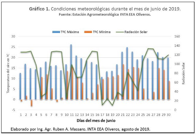 Sanmarti, N. 2019. Informe meteorológico mensual de junio. INTA EEA Oliveros, Estación Agrometeorológica.