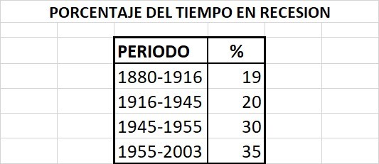 Como puede verse en el cuadro 2, el porcentaje de años en recesión va creciendo a los largo del siglo en estrecha relación con el abandono de las políticas que inspiraron la Constitución de 1853/60 y a medida que el estado fue adquiriendo mayor intervención en la economía y el populismo fue tomando cada vez más fuerza.