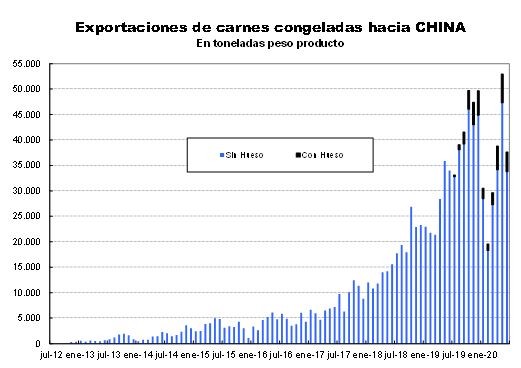 El rubro de las carnes congeladas con hueso revirtió la tendencia ascendente de meses precedentes, y en este orden también fueron un factor fundamental las compras de China.