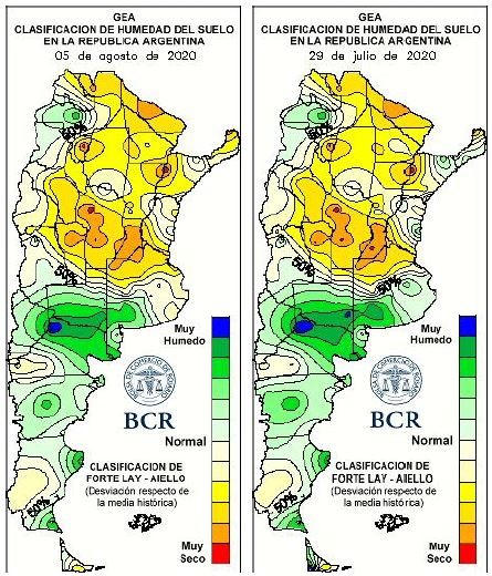 Otra semana más sin agua en la región pero además se suma el efecto de temperaturas muy altas y atípicas: las máximas oscilaron entre 30 y 34ºC en la región núcleo. Si bien la mayor parte de los trigos de la región se encuentran en macollaje, hay lotes, como en los alrededores de Cañada de Gómez, que se adelantaron y comienzan a encañar por las elevadas temperaturas. Otro problema es que la tasa de crecimiento del cultivo está detenida y los macollos se están perdiendo por la falta de agua. El calor aceleró la pérdida de agua: ya no hay más humedad en los primeros 20 cm del suelo los lotes regulares. El deterioro del cultivo es preocupante. 120 mil has se sumaron a la condición regular esta semana; la región núcleo ya totaliza 400 mil ha regulares. Y muchos lotes pasaron a la condición mala: 80 mil ha del centro y sur de Santa Fe y el oeste cordobés. Los rodeos sin plantas crecen. En Córdoba, en Monte Maíz, advierten, "Este año se sembró el 25% del total sembrado en la 2019/20. Y hay un 10 a 15% que está muy comprometido por la seca". Si no llueve antes de fin de agosto van a cambiar de cultivo.