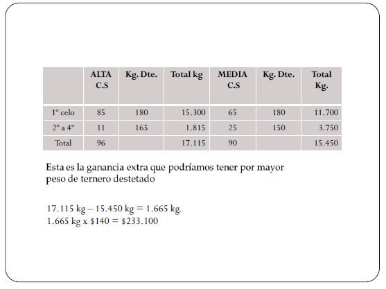 Por lo tanto en este sencillo trabajo, que no pretende ser un análisis económico profundo ya que nuestra formación no es esa, hemos volcado datos simples y concretos para lograr demostrar que esta tecnología intermedia impacta de una manera cabal en un rodeo de cría.