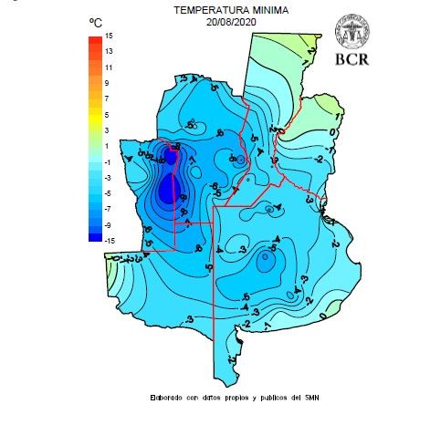 agosto se pasó a mínimas de -6°C en la madrugada 20/8. En Córdoba se registraron