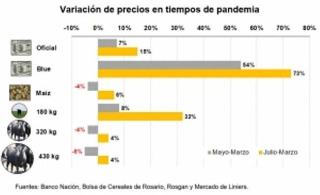 Se puede observar que en los últimos meses el tipo de cambio y el precio del ternero amentaron en mayor magnitud que el maíz y la hacienda terminada, tanto terneros gordos como novillos. Esta variación, que hace a la relación compraventa y a los costos de alimentación, tiene un efecto más o menos significativo sobre los resultados económicos según el tipo de actividad y su grado de intensificación.