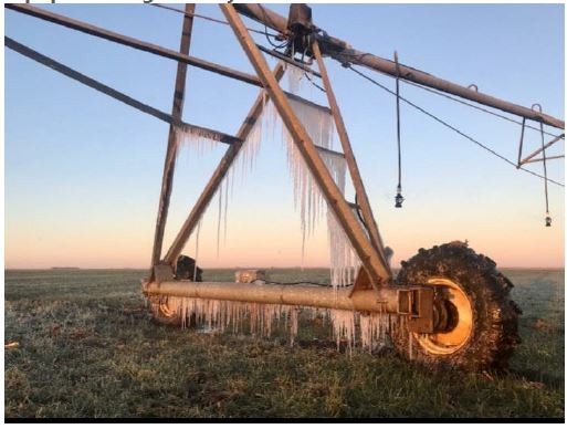 En el Trébol decían: "se necesitan 20 mm para detener la caída del rinde, la que podría llegar hasta un 50%". Todos los ingenieros esta semana coincidían en señalar con pequeñas diferencias lo mismo. "Si bien no se observan daños por heladas en el ápice de las plantas de trigo, aparecen hojas afectadas y muerte de macollos", decían para explicar porque se están estimando fuertes pérdidas de rinde. Las lluvias eran muy importantes para frenar el deterioro y la muerte de macollos tras dos semanas con intensas y repetidas heladas que tuvieron un impacto fuertísimo ante la falta de agua. En la zona de Rojas para mostrar la intensidad del frío muestran la siguiente foto: un equipo de riego trabajando en la mañana del 20/8.