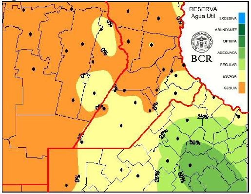 Era una semana clave para el trigo de la región núcleo, había grandes expectativas de que al fin lloviese y el cultivo empezara a recuperarse. Pero las tormentas fueron muy puntuales. Chacabuco registró 50 mm pero en Pergamino solo se acumularon 2 mm. Las demás localidades favorecidas fueron Rojas con 30 mm, en Santa Fe María Teresa con 20 mm, y en Córdoba Guatimozín con 30 mm. Aparte, las tormentas en muchos casos estuvieron acompañadas de granizo. En Carlos Pellegrini lo resumen así: “cumplimos 120 días consecutivos sin lluvias. La situación ha llegado a niveles impensados: el 90% de los productores está pensando en dar por terminado el ciclo, pulverizar lo sembrado y esperar lluvias para poder pasar a soja de la mejor manera”. En Bigand el 90% de los cuadros se encuentran entre regulares y malas condiciones. Esperaban estas lluvias como última posibilidad para un 10 a 15% de los lotes. En Pergamino es el 70% de los cuadros. “Los lotes están como si se les hubiesen aplicado un desecante”, dicen los técnicos. Lamentablemente, el trigo pasa en esta semana a tener 1 M de ha entre regulares y malas lo que representa casi dos terceras partes de lo que se sembró este año en la región. Hace un mes atrás lo peor del trigo estaba arrinconado solo en el este cordobés y centro sur santafesino y solo había 250 mil ha regulares.