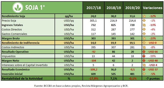 Resultad económicos de la soja de primera para un campo promedio de Córdoba