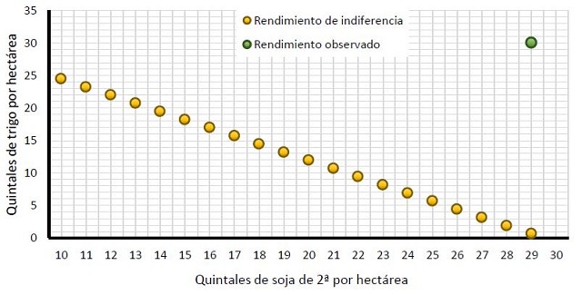 Rendimiento de indiferencia para el planteo combinado -Trigo + soja de 2ª