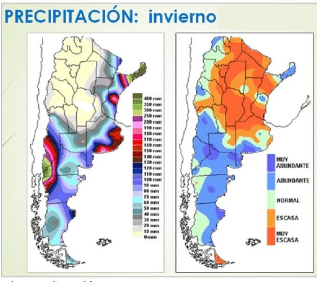Como se sabe la provincia de CB ingresó al invierno con un escenario de reservas bastante más restringido que el resto de la zona núcleo. La oferta de agua en la provincia mediterránea en el oeste de SF, no es suficiente en el invierno cuando se parte de situaciones deficitarias. Esto se vio empeorado con el cuadro que presentan los mapas. Las zonas agrícolas del NEA transitan por la misma situación.
