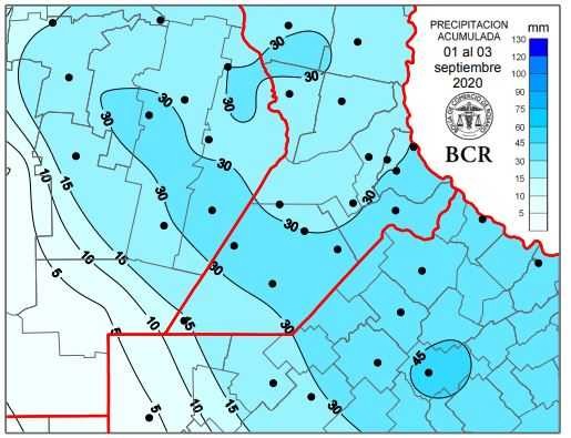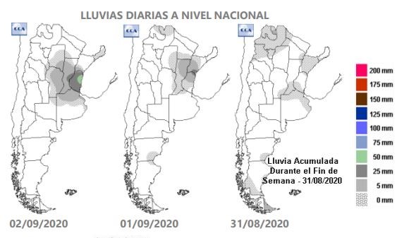 La región en general recibió 25 mm en promedio. Son las primeras lluvias importantes después de 4 meses sin lluvias. Pero estas lluvias han sido un evento con características muy poco comunes. Para empezar, los valores de lluvia registrados triplicaron lo que señalaban los modelos. Aparte, no hubo circulaciones importantes de humedad en los días previos y se dan sin el auspicio de los grandes forzantes oceánicos. También, fue un evento que se desarrolló en casi 3 jornadas de lluvias muy suaves, ideales para que se infiltre cada milímetro en el suelo. Este comportamiento es más típico de noviembre que de esta época, lejos de tormentas violentas y acompañadas de granizo tal como pasó en la anterior semana. Otro dato destacable es que, tomando, en conjunto las lluvias de las últimas dos semanas (24/8 al 3/8) Chacabuco alcanzó 115 mm, Junín 84 mm y Rufino 70 mm. Para ese periodo son registros récords. ¿Se repetirá este tipo de eventos? El enfriamiento del Pacífico sigue profundizándose. De todas maneras, Aiello, explica que si "esta continuidad pluvial comienza a concretarse podría ser el disparador para que las lluvias puedan alcanzar las regiones del oeste".